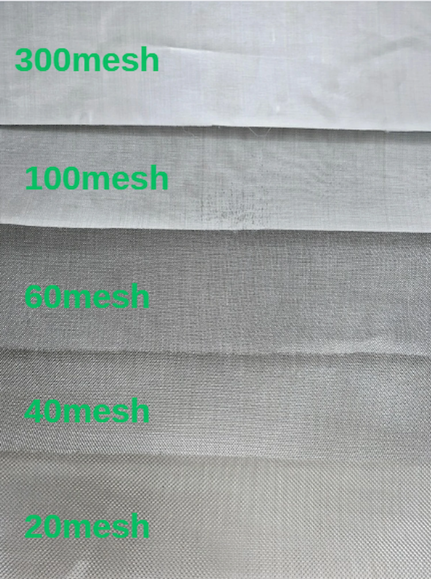 - Loại mắc lưới: 2 mesh, 10 mesh, 20 mesh, 40 mesh, 60 mesh, 80 mesh, 100 mesh, 200 mesh, 300 mesh, 400 mesh.