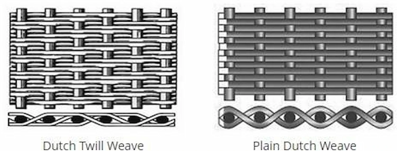 - Dệt sợi dọc lớn hơn sợi ngang (Plain Dutch weave): Từ 10×64 mesh đến 80×700 mesh