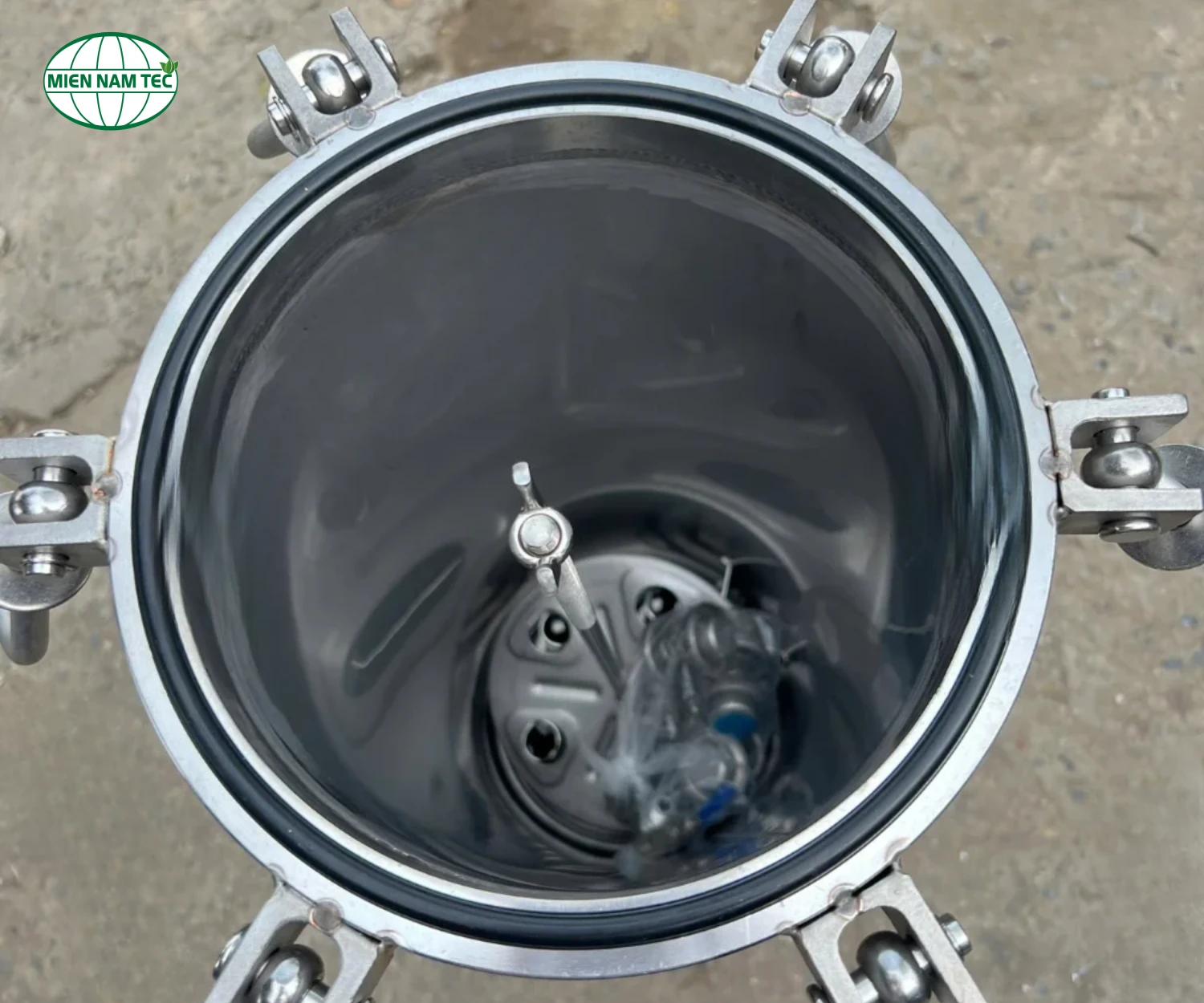 Được chế tạo từ inox SS304, bình có khả năng hạn chế gỉ sét và duy trì độ an toàn khi tiếp xúc với nhiều loại dung dịch. Đồng thời, thiết kế dạng housing giúp việc thay lõi diễn ra thuận tiện, giảm thời gian gián đoạn hệ thống.