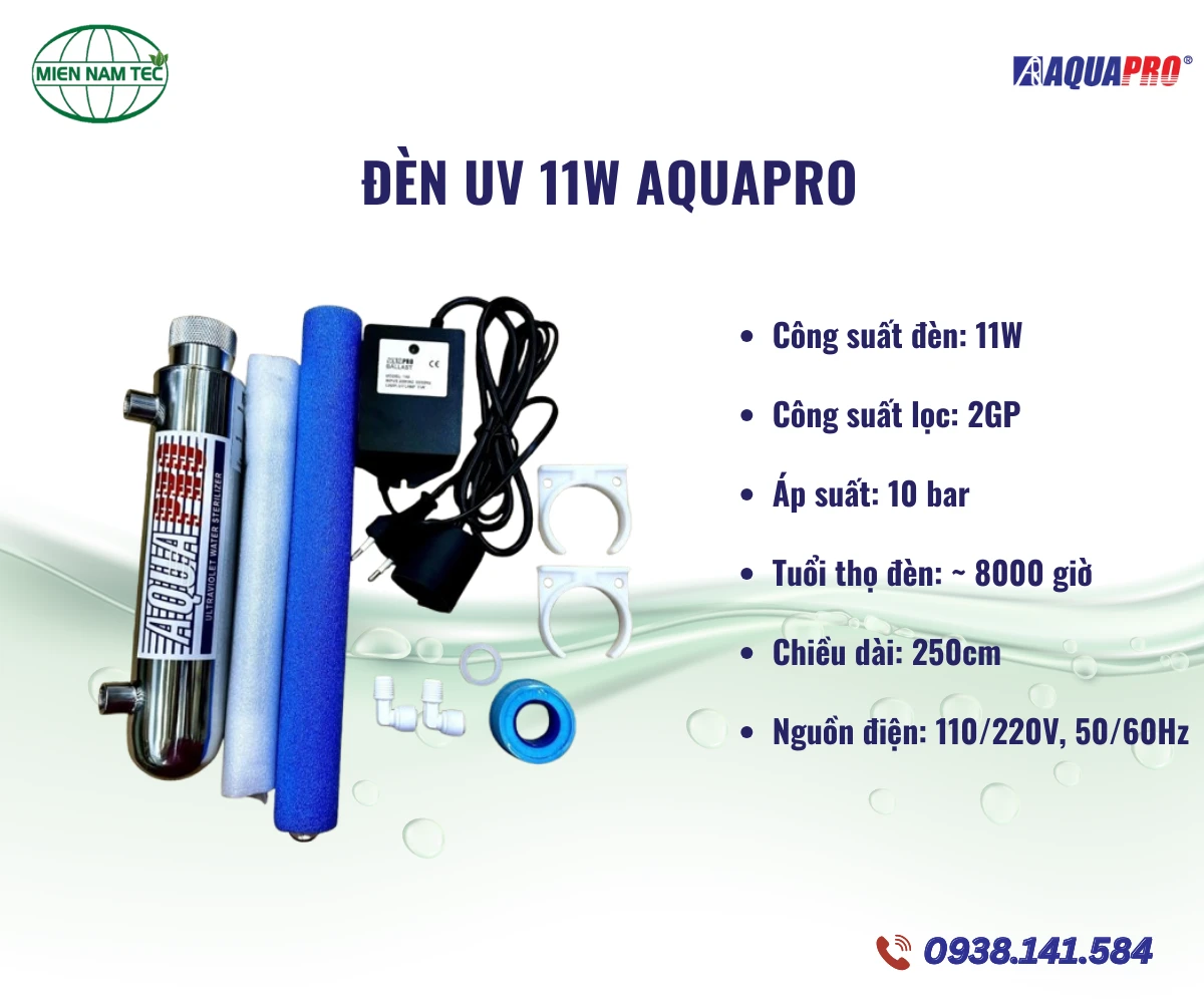 Bộ đèn UV 11W Aquapro mang lại nguồn nước an toàn và tinh khiết. Những thông số kỹ thuật dưới đây sẽ cho thấy sự bền bỉ và tính năng vượt trội của sản phẩm.
