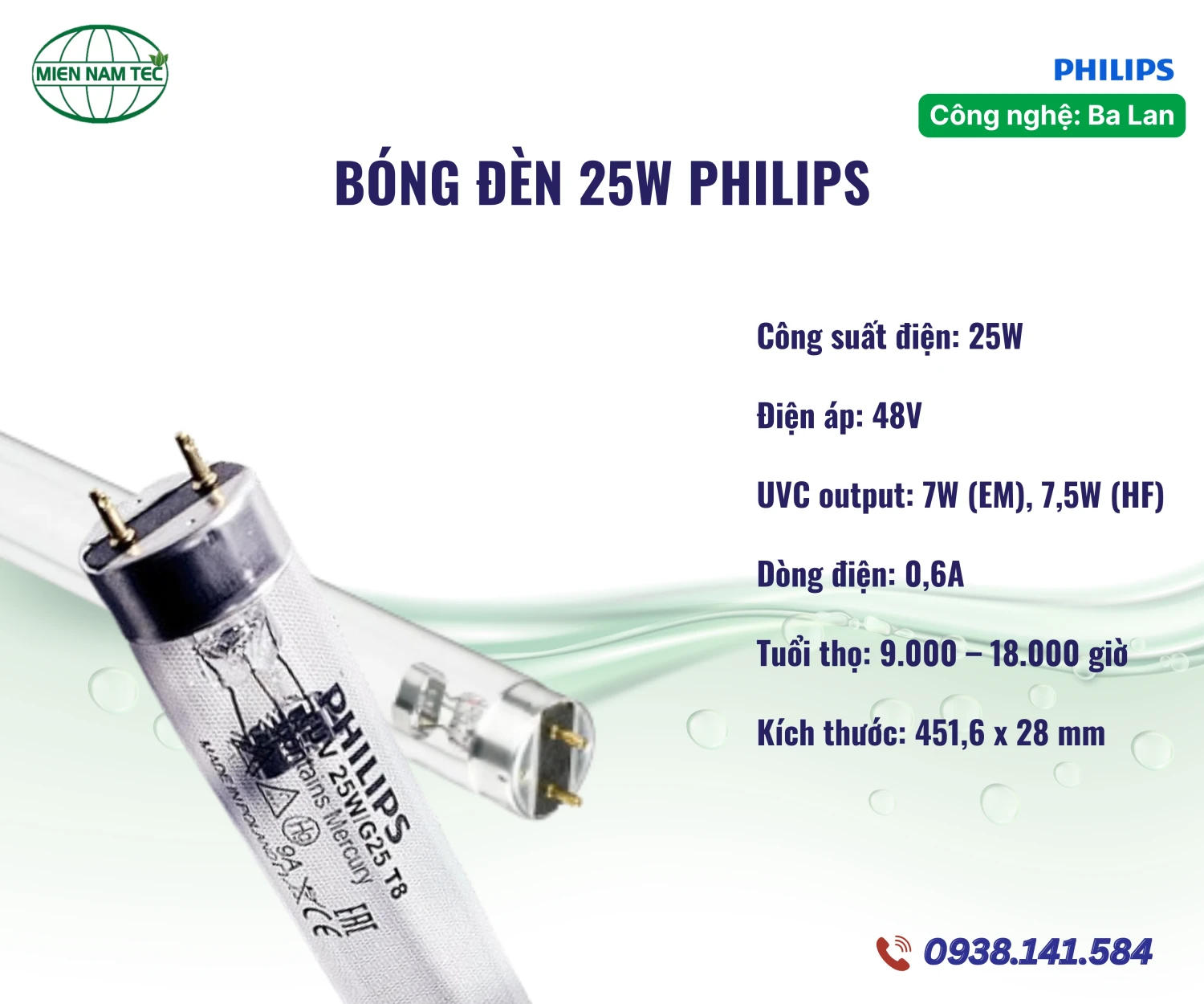 Thông số kỹ thuật của bóng đèn UV 25W Philips