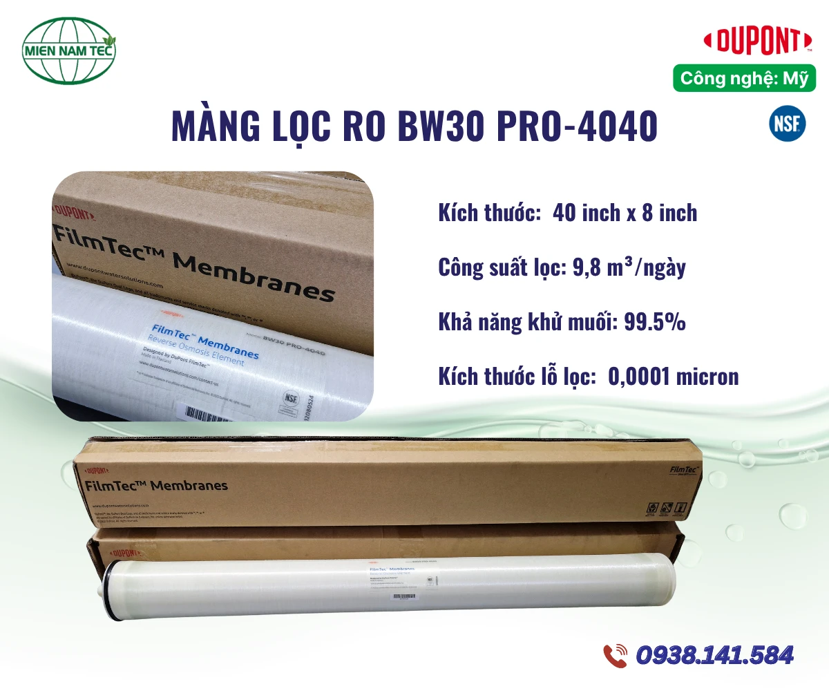 Trong các hệ thống xử lý nước công nghiệp, việc chọn màng lọc chất lượng quyết định hiệu quả và chi phí vận hành. Màng RO Dupont BW30 PRO-4040 nổi bật nhờ khả năng loại bỏ muối tới 99,7%, vận hành ổn định ngay cả với nguồn nước khắc nghiệt. Đây là giải pháp lý tưởng cho các doanh nghiệp sản xuất nước uống, thực phẩm – dược phẩm hay xử lý nước lợ. Bài viết dưới đây sẽ giúp bạn hiểu rõ đặc tính, thông số và lợi ích của sản phẩm, đồng thời gợi ý nơi mua chính hãng với giá tốt.