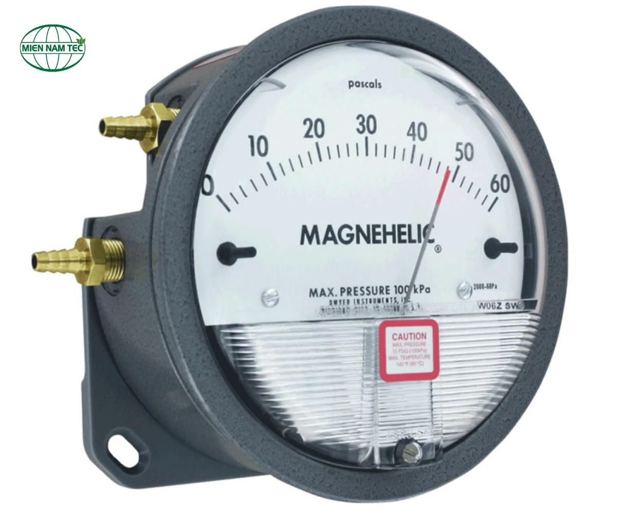 2000-750PA thuộc dòng Magnehelic Series 2000 của Dwyer Instruments (Mỹ), là đồng hồ đo áp suất chênh lệch cơ học nổi tiếng trên thế giới. Thiết bị này đo chính xác áp suất thấp trong không khí và khí không ăn mòn, không cần nguồn điện và hiển thị rõ ràng trên mặt đồng hồ 4 inch. Qua đó sản phẩm giúp phát hiện sớm tình trạng tắc nghẽn bộ lọc, tối ưu hiệu suất hệ thống và giảm chi phí bảo trì.