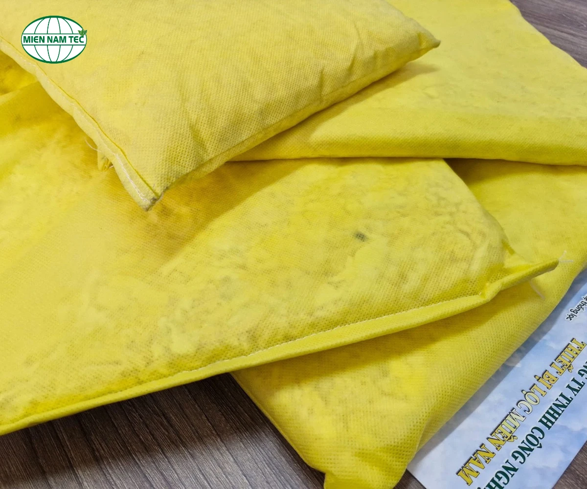 Một giải pháp chuyên nghiệp hơn là đặt trực tiếp gối thấm hóa chất dưới nguồn rò rỉ để hứng trọn từng giọt dầu trước khi chúng lan rộng. Sản phẩm này giúp khóa chặt chất lỏng bên trong, ngăn ngừa ô nhiễm thứ cấp và giữ cho nền xưởng luôn khô ráo. Hãy cùng Công Nghệ Thiết Bị Lọc Miền Nam đánh giá hiệu quả thực tế của giải pháp này.