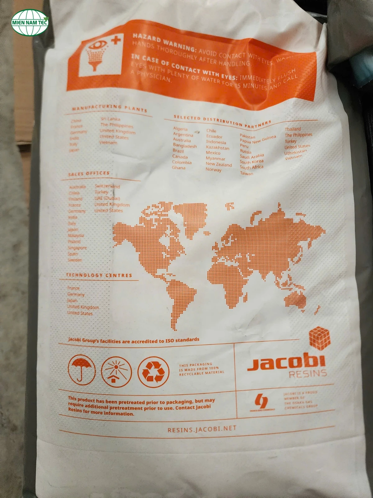 Hạt nhựa trao đổi ion Jacobi Resinex K8 tại Công Nghệ Thiết Bị Lọc Miền Nam