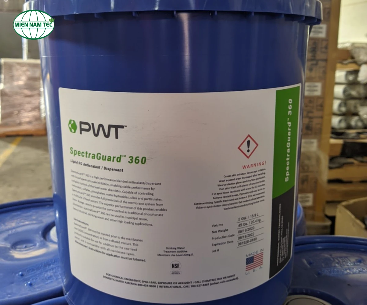 SpectraGuard 360-5G là hóa chất chống cáu cặn được thiết kế dành riêng cho các hệ thống lọc nước RO công suất lớn. Đây là sự lựa chọn hoàn hảo cho các công trình lọc nước hiện đại, đặc biệt với những nguồn nước có hàm lượng muối, silica và chất ô nhiễm cao.