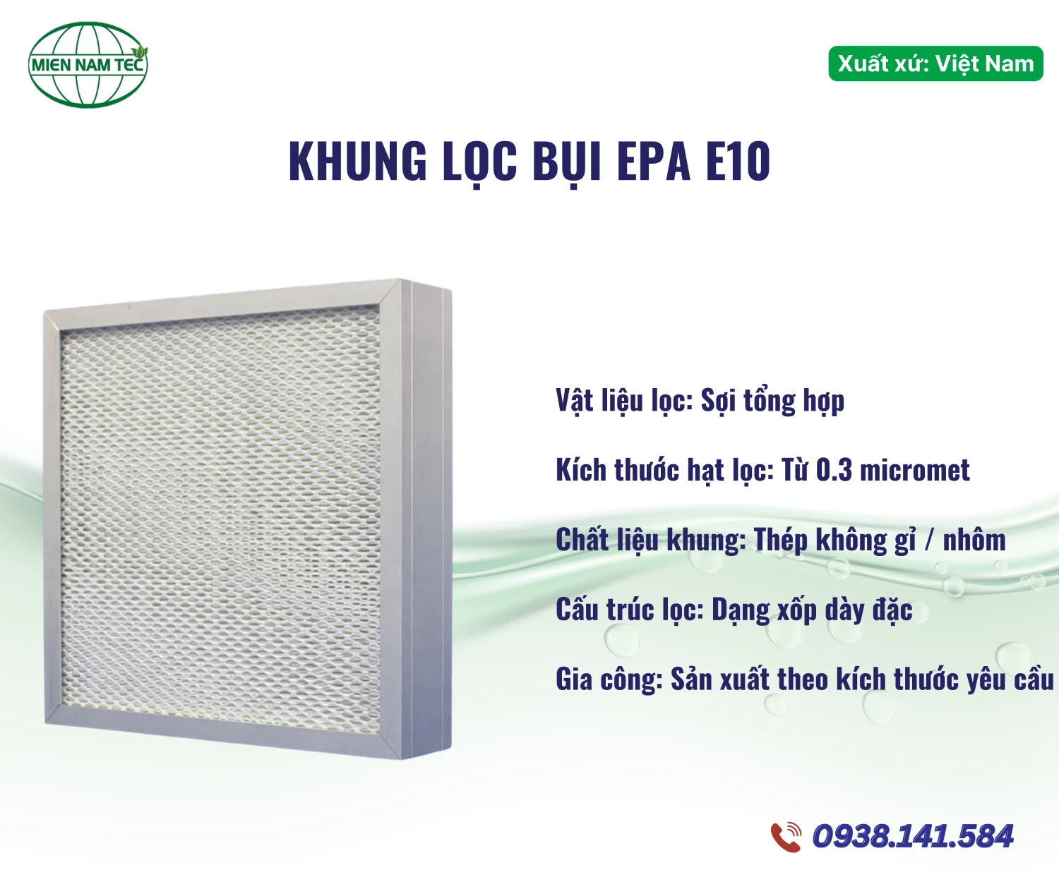 Tại Công Nghệ Thiết Bị Lọc Miền Nam cung cấp đầy đủ các loại khung lọc EPA E10, số lượng lớn, giá cả hợp lý, đồng thời gia công kích thước theo yêu cầu, giúp khách hàng dễ dàng lựa chọn giải pháp phù hợp cho từng hệ thống cụ thể.
