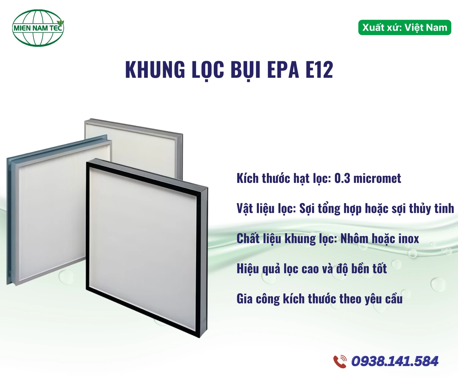 Khung lọc EPA E12 thuộc nhóm khung lọc bụi tinh, có khả năng loại bỏ các hạt bụi kích thước nhỏ trong dòng khí lưu thông. Sản phẩm đáp ứng tiêu chuẩn EPA và thường được sử dụng trong các hệ thống xử lý không khí cần độ sạch cao.