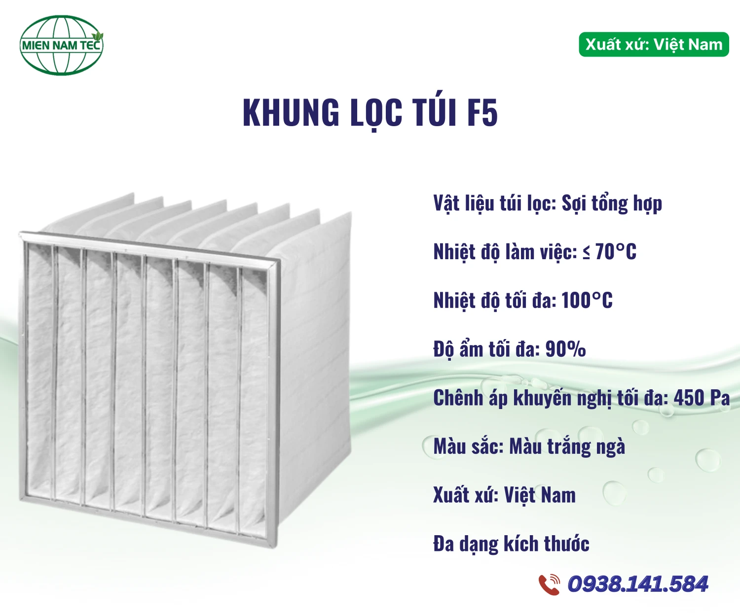 Khung lọc túi F5 là giải pháp lọc khí trung gian hiệu quả, cân bằng tốt giữa hiệu suất lọc, lưu lượng gió và chi phí vận hành. Với thiết kế bền chắc, thông số kỹ thuật rõ ràng và khả năng ứng dụng linh hoạt, sản phẩm đáp ứng tốt nhu cầu của nhiều lĩnh vực khác nhau.