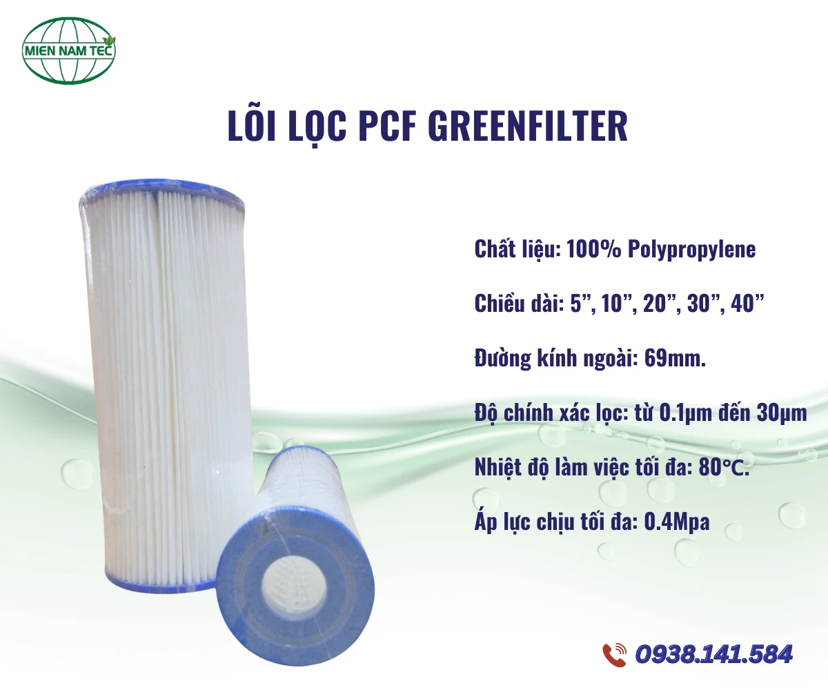 Để bạn có một cái nhìn khách quan và chi tiết nhất về sản phẩm, Công Nghệ Thiết Bị Lọc Miền Nam xin cung cấp bảng thông số kỹ thuật tiêu chuẩn của lõi lọc PCF Green Filter: