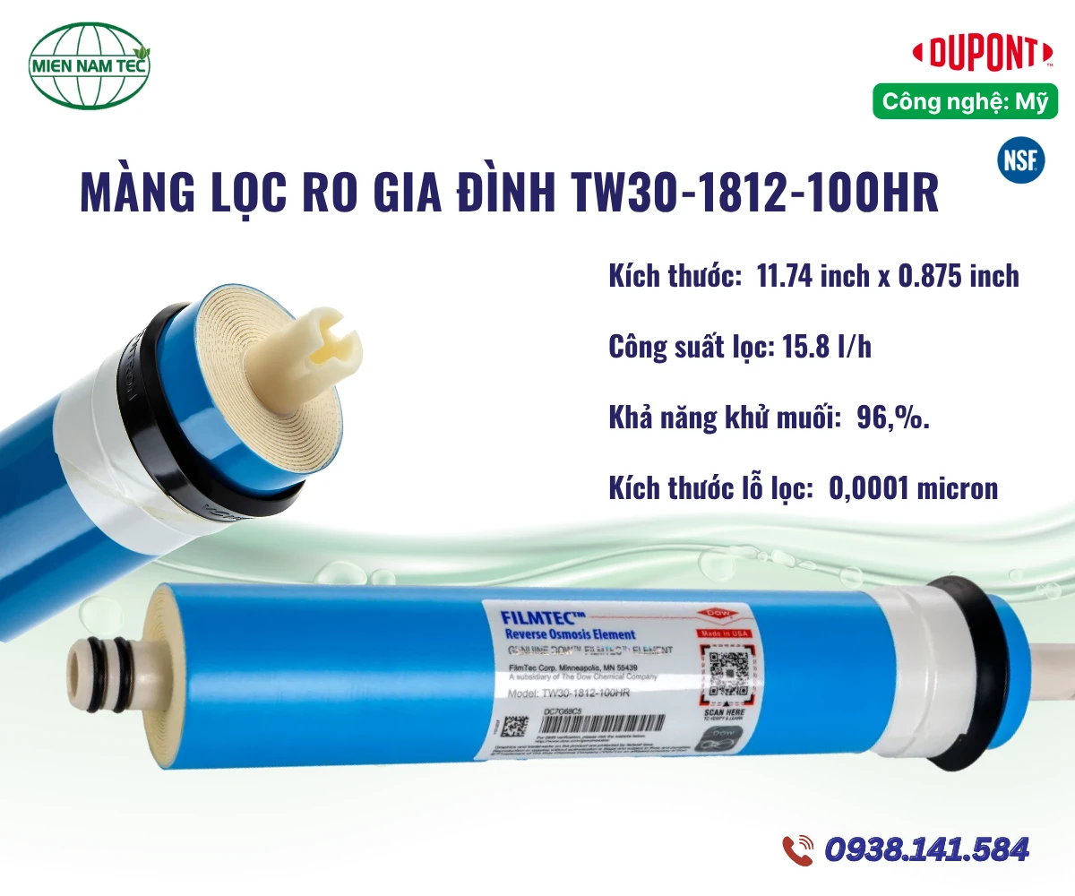 Bạn đã bao giờ tự hỏi điều gì quyết định chất lượng nước tinh khiết từ máy lọc RO? Câu trả lời chính là màng RO bộ phận không thể thiếu của hệ thống. Màng Filmtec TW30-1812-100HR được sản xuất tại Mỹ bởi tập đoàn DOW, ứng dụng công nghệ thẩm thấu ngược tiên tiến, loại bỏ đến 99% tạp chất, vi khuẩn và kim loại nặng. Đây là lựa chọn lý tưởng giúp gia đình bạn an tâm sử dụng nguồn nước sạch, tinh khiết mỗi ngày. Hãy tiếp tục theo dõi để khám phá chi tiết cấu tạo, thông số kỹ thuật và nơi mua chính hãng.